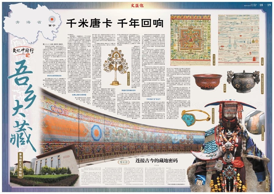 青海江河连东土,河湟山川通西陲。历史上,曾有众多民族在青海繁衍生息,各种文化要素在这里交融汇聚,留下璀璨如星海的文化遗存。在此次采访旅程中,记者从探寻唐卡的“真面目”开始,一步步走近藏地文化传承的密码。“唐卡不是静止的画,而是流动的文明长河。”青海藏文化博物院副院长多杰加说,“《彩绘大观》是展示藏文化魅力、促进文旅融合的重要载体,让更多人了解和欣赏传统文化的独特之处。”